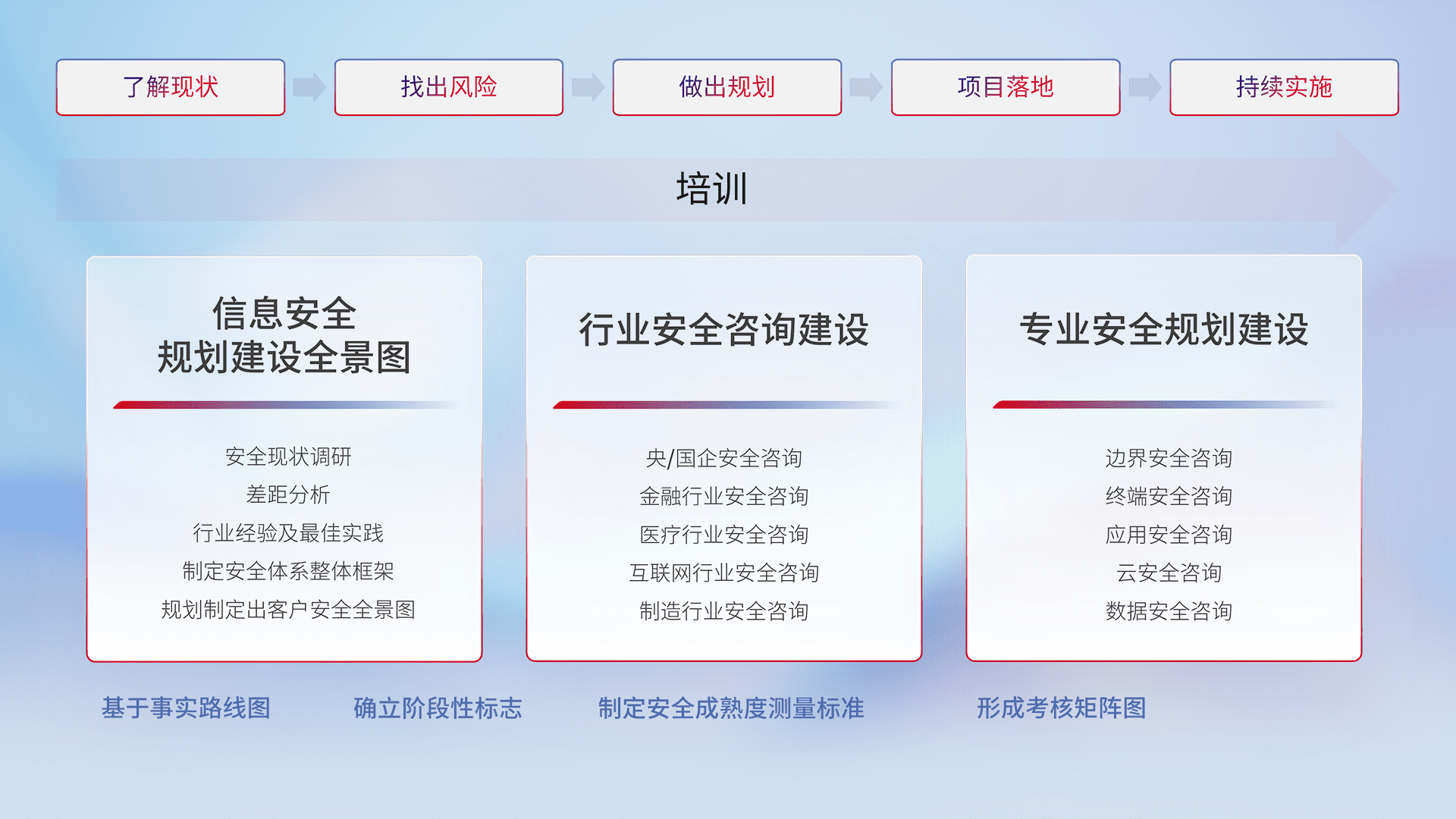 梳理客户信息安全现状调研、、、、差距分析结果,,结合行业先进经验及最佳实践,,制订客户的信息安全管控体系总结架构,,最终形成一个完整的客户信息安全规划与建设的全景图。。。